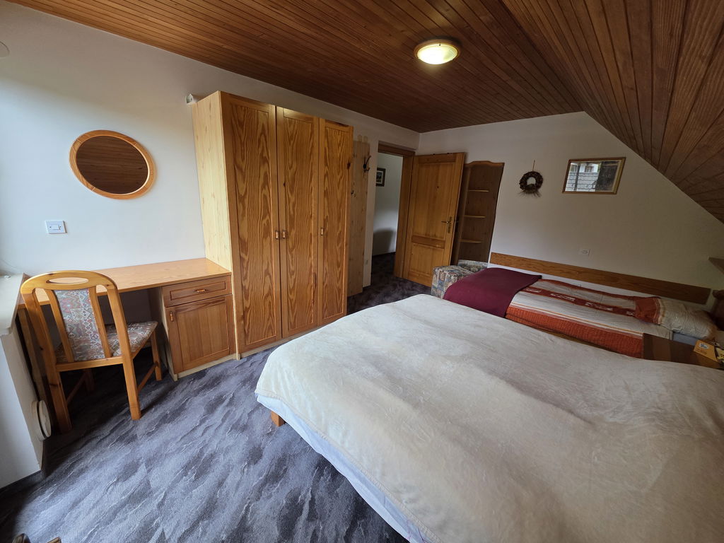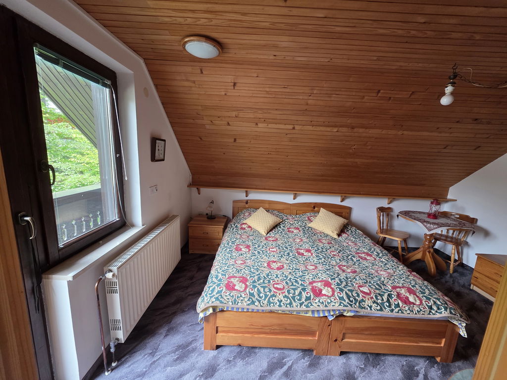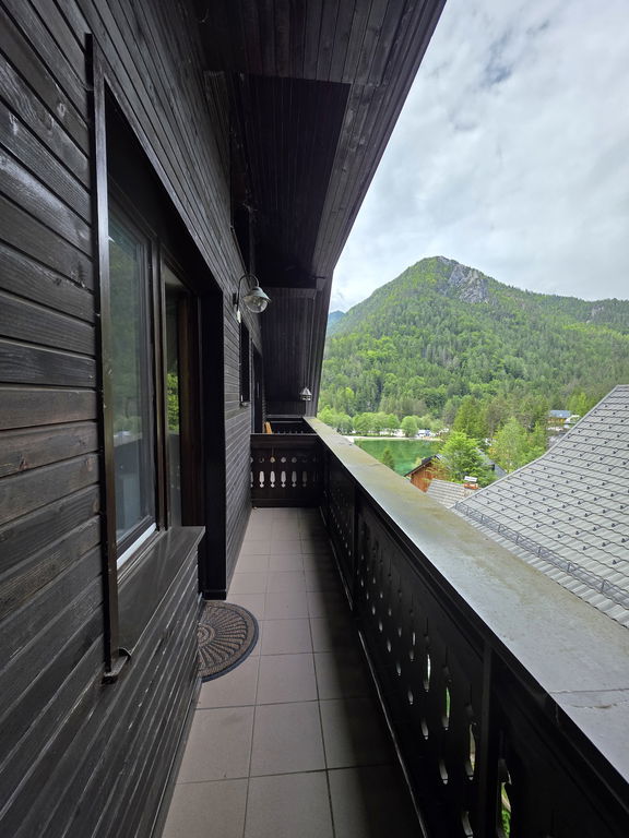 Spalnica (14,6m2) z izhodom na balkon 3,4m2 (ima stranski pogled na jezero), kopalnica (2,5m2) s tušem ter dnevni prostor s kuhinjo in jedilnico v enem 18,9m2(okno ima direkten pogled na jezero). K temu stanovanju pripada tudi podstrešje v izmeri 18,6m2.