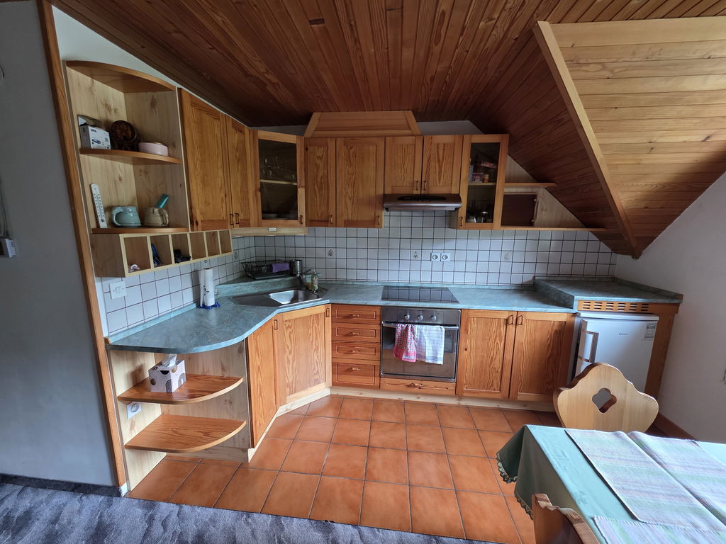V sobi je trenutno kuhinja z jedilnico na levi strani in dnevno spalni del na desni. Kopalnice ni, je pa skupna kopalnica in skupni WC na hodniku.