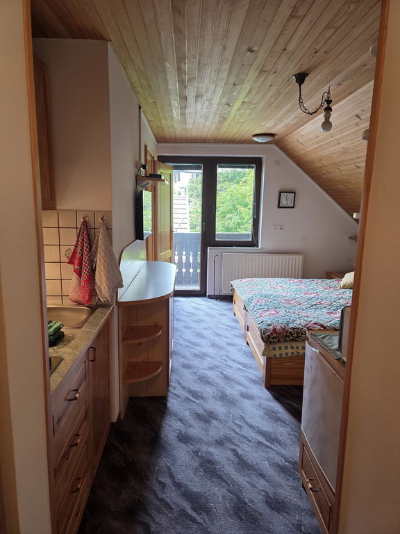 4. Garsonjera v mansardi (bruto 24,2m2, uporabna površina 16,2m2):