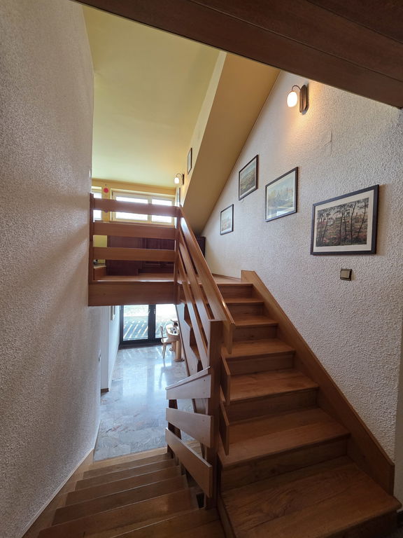 Hiša je grajena medetažno in je sestavljena iz predsobe, garaže s kurilnico, garaže, shrambe z vinsko kletjo, kopalnice s kadjo, utility-ja, dnevne sobe z izhodom na teraso, kuhinje z jedilnico, kopalnice s tušem, dveh spalnic, spalnice s pripadajočo kopalnico s tušem in kabineta.